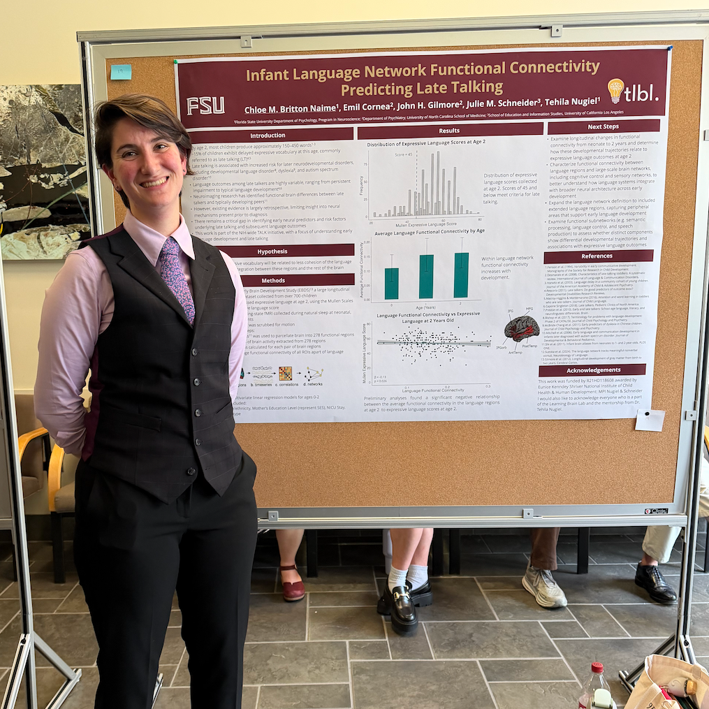 Chloe Britton Naime is a first year PhD student presenting their poster titled “Infant Language Network Functional Connectivity Predicting Late Talking.”